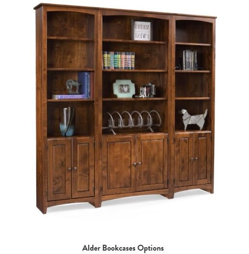 Choose from our popular Alder bookcases in multiple sized with 14 custom finishes and 13 paint options. American made to last.