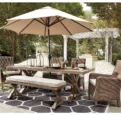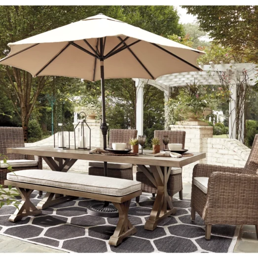 Sporting an easy-on-the-eyes look inspired by driftwood, the Beachcroft dining table elevates the art of alfresco living. Beautiful and durable enough for indoor and outdoor use, this high-style/low maintenance table charms with X-leg farmhouse styling, while its thick porcelain tabletop adds a natural complement. Beautiful outdoor set for all occasions.