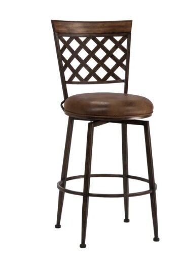 For bright and airy rooms, utilizing unique pieces that provide the feeling of enjoying a warm breeze on a summer day make those spaces feel even lighter. With this commercial-grade Metal Counter or Bar Height Stool, bring an earthy, calming energy to high-traffic areas in your home or business. Crafted from a sturdy, dark brown metal frame, this swivel bar stool is designed with a lattice-style back and wooden top rail that feels like it was pulled from a lodge cabin and has a 360-degree swivel seat covered in a walnut brown faux leather making it enjoyable for years to come.