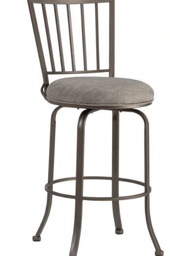 Design trends change, and you evolve with them. But you also know the value of having classic pieces that never lose their sense of style. With this commercial-grade Metal Counter or Bar Height Stool, meet your new décor staple. Its solidly constructed gray metal frame has a minimal, curved slat back that offers durable support for home or high-traffic areas, a plush, padded 360-degree swivel seat covered in a gravel-toned herringbone pattern for comfort, and cabriole legs for an added pop of interest. Plus, with its modern yet timeless energy, this bar stool adapts easily to any space or interior scheme.