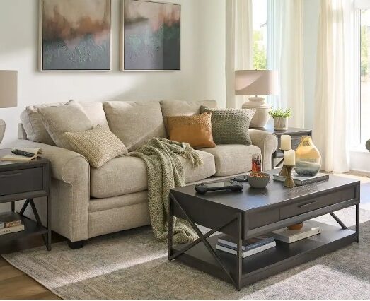 The Olson Queen Sleep Sofa turns any room into a posh guest room. Rolled, welt-trimmed arms add classic style. Plush casual back cushions and chic tailored seats invite talks and laughter into the night…the cozy quilted mattress brings sweet dreams!