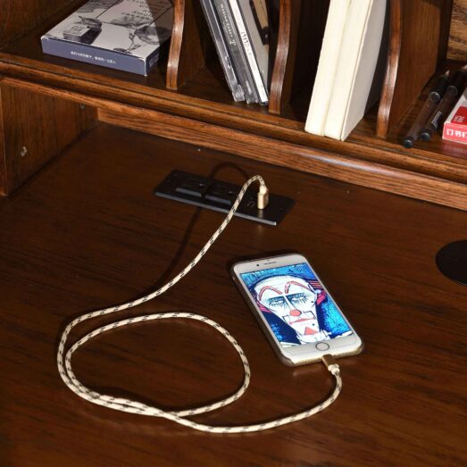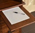 The perfect work station for a student or home office. Compact storage with “pigeonholes” for organization. This desk has the convenience of a USB port and power outlet. Constructed of Solid Oak and Oak veneers with quality hardware and hinges. Available in Burnish Walnut or Harvest finishes.