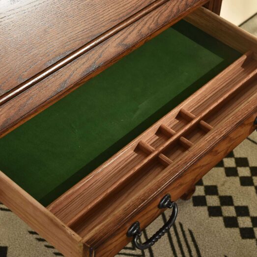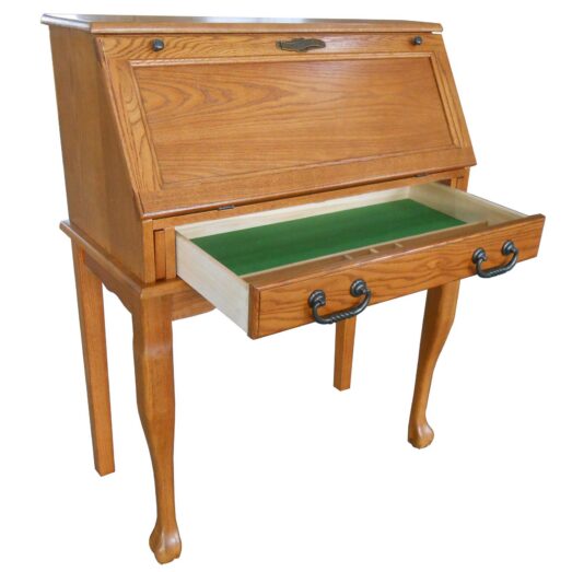 The perfect solution to organize your office space, this desk is complete with interior “pigeonholes”. It is constructed of solid oak and oak plywood, quality hinges and hardware in Burnish Walnut or Harvest finishes.